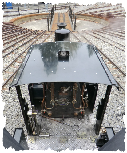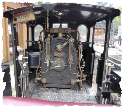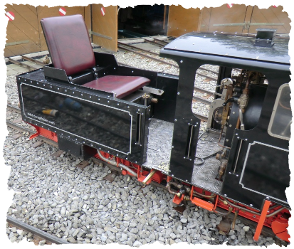 Unten: Ein sehr bequemer Sitz ermöglicht längere Fahrten am Stück ohne dass anschliessend der Rücken schmerzt. Die Füsse können sich im Führerhaus befinden oder aber auch seitlich, aussen am Tender auf den Fussrastern